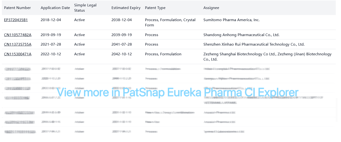 EU Market: Limited data available, but patents from Acacia Pharma Ltd. and Sumitomo Pharma America, Inc. may create barriers.